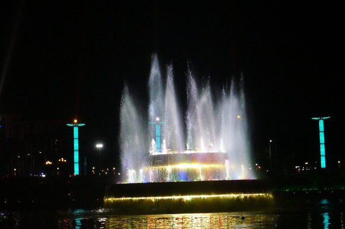 到了晚上,在經(jīng)過短暫到休息和品嘗過河源地道的地方美食后,我們又到有亞洲第一高音樂噴泉之稱的新豐江音樂噴泉,觀看音樂噴泉演出,在歡快愉悅的樂曲中,通過直噴、水簾、水浪、水松、內(nèi)拋、搖擺、編網(wǎng)等8種水型,不斷組合成數(shù)十個變幻莫測、絢麗多姿的噴泉景觀,有似流金溢彩、火樹銀花,有如孔雀開屏、彩虹飲澗;是水的畫、燈的詩,給人以美的享受。